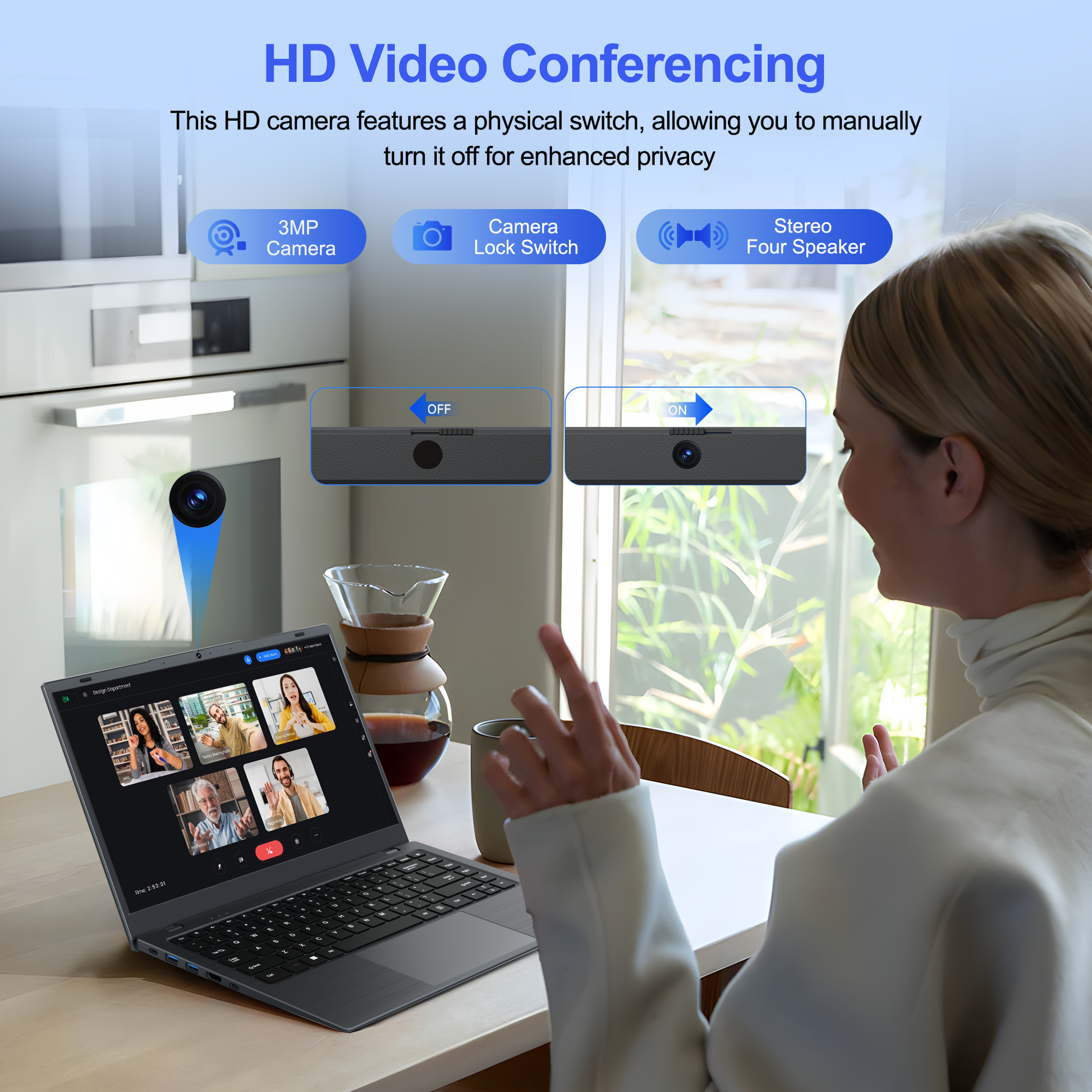 - Vibrant Full HD Display: The 14 inch FHD anti-glare display delivers crystal-clear, vivid visuals while providing excellent eye protection. With a physical privacy shutter for added security, the HD webcam ensures sharper and more comfortable video calling experience.