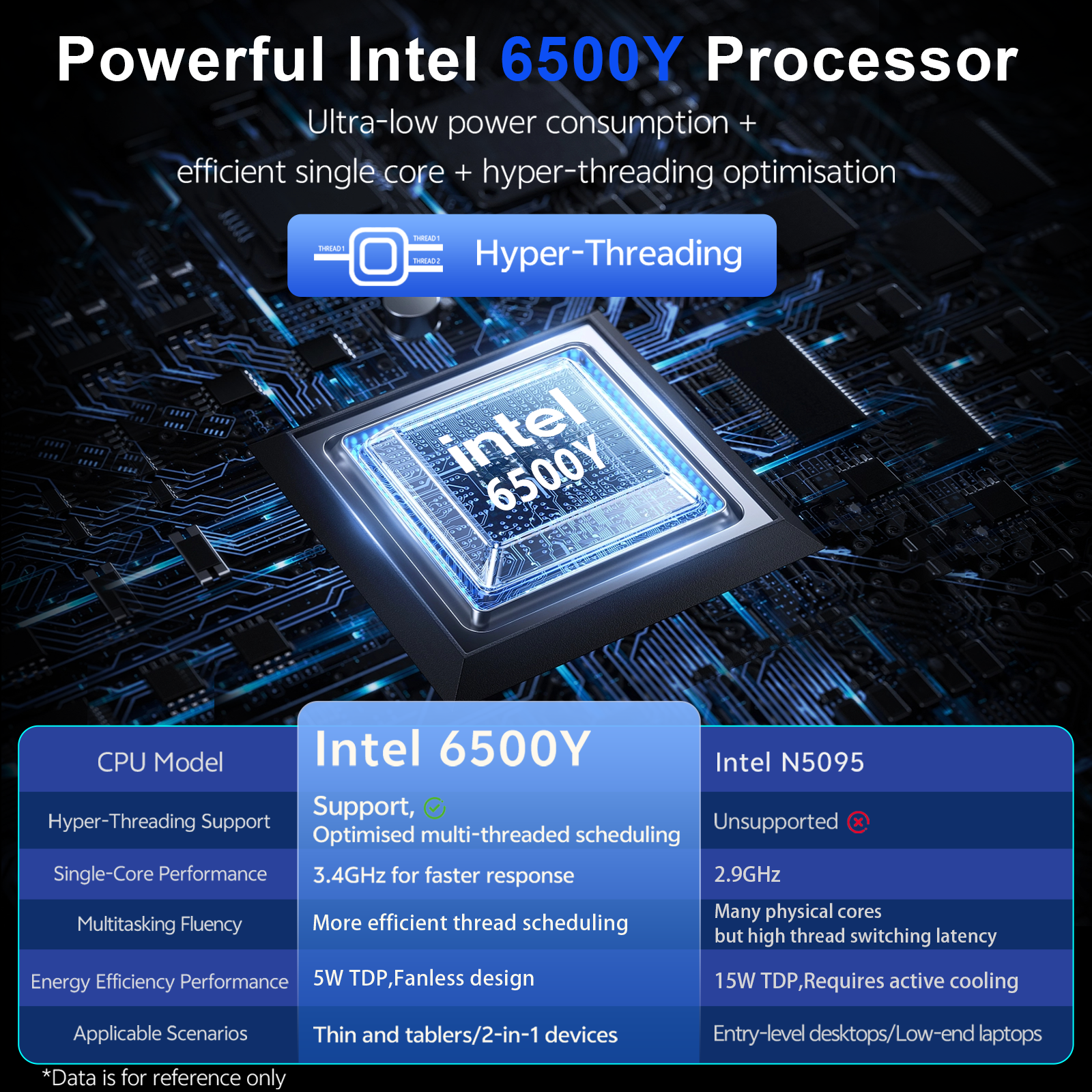 - Extended Battery & Fast Charging: The 5W TDP design enables 8 hours of office use with Type-C PD fast charging (80% in 30 mins). Fanless operation ensures silent performance, ideal for libraries or quiet spaces. Compatible with phones/tablets/headphones; one cable cuts carry load, plus bidirectional emergency power support.