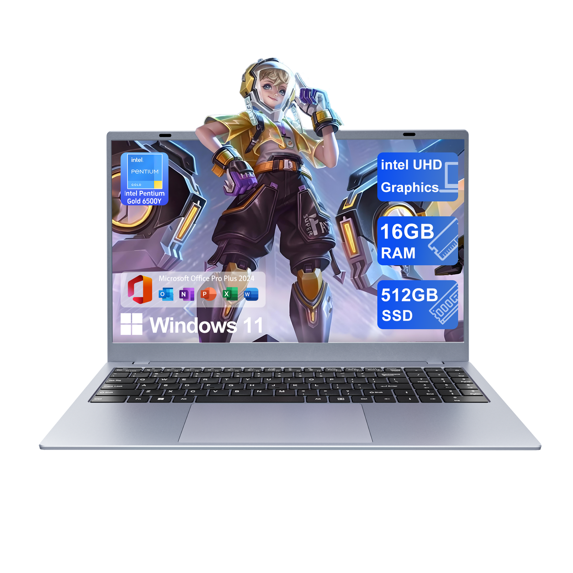 RNRUO 15.6" Windows 11 Laptop, 16GB RAM 512GB SSD, Intel Pentium Gold 6500Y with 2 Cores Up to 3.4GHz, Full HD Display, Office 2024, WiFi5 BT5.0, Laptop Computer for Business, Student, Home Office